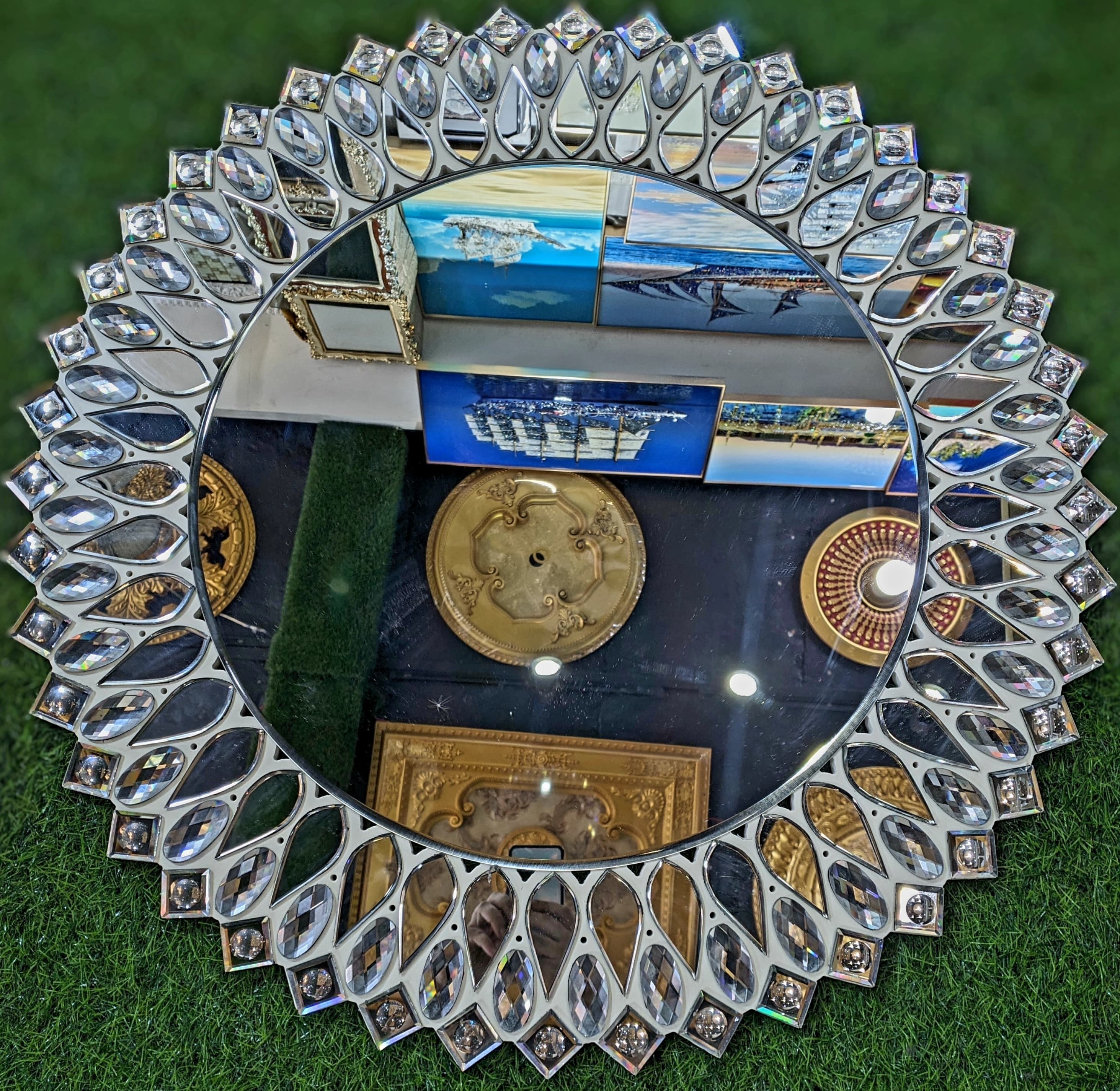 Large Round Mirror Wall Mounted Glass Vanity Make Up . Stone
